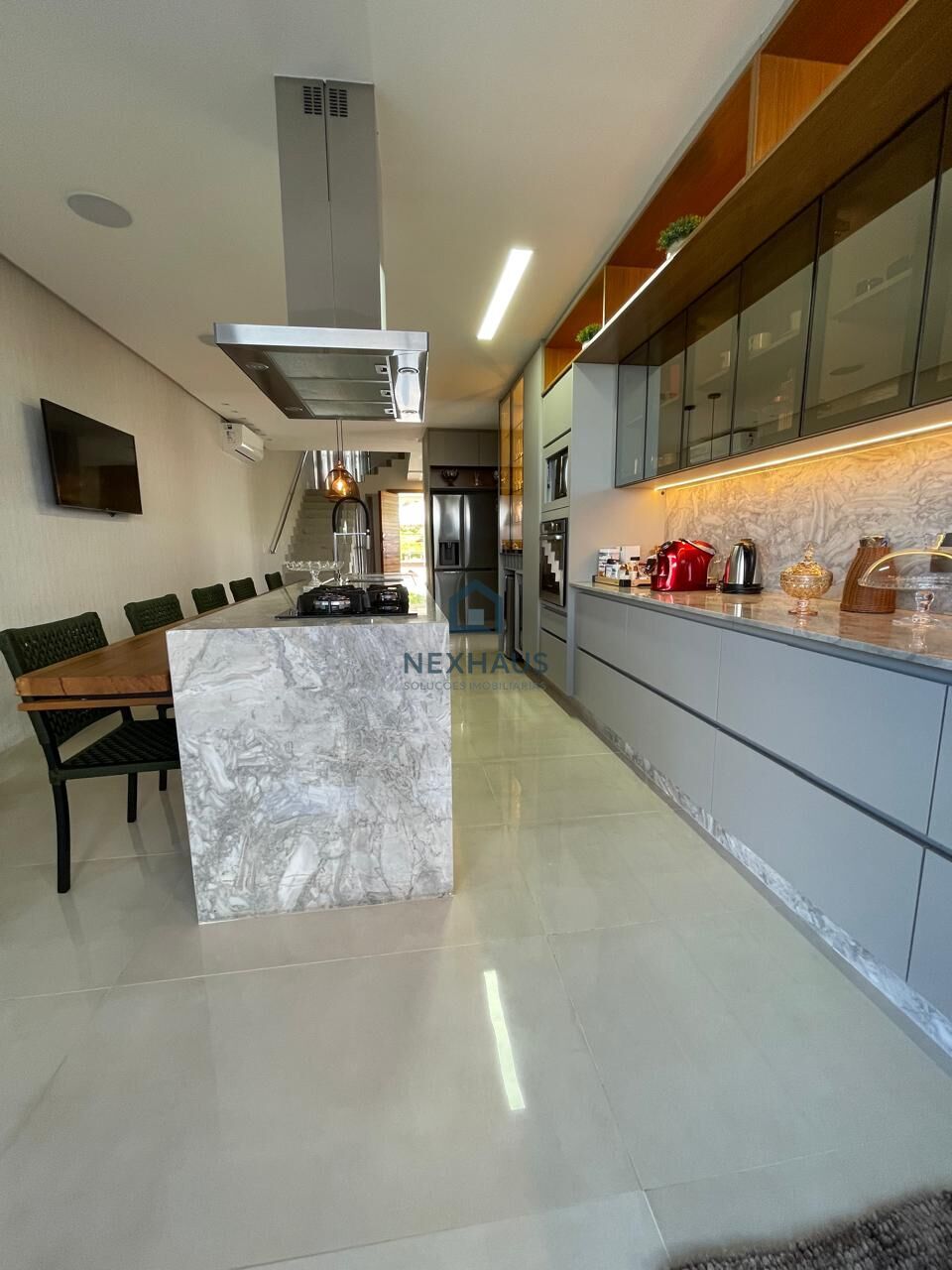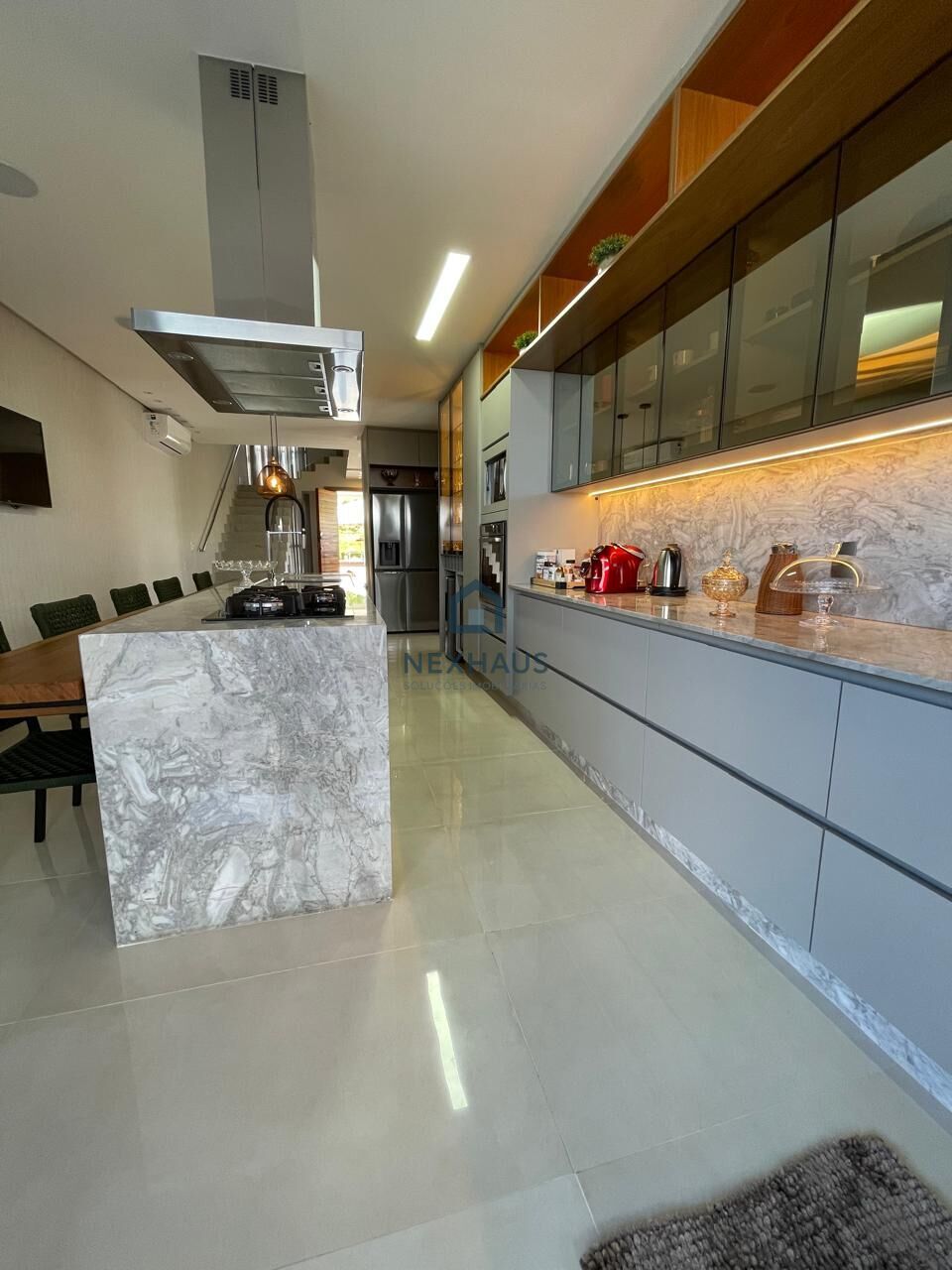 - Completa em armários, iluminação e espelhos, acabamentos e mármores das melhores qualidades, persianas automatizadas, sistema de som JBL